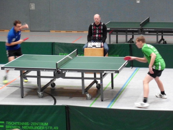 Schließlich war in der letzten und entscheidenden Partie des Tages sogar noch ein Gesamtsieg für die Wiedauer möglich, nämlich in der Begegnung Kevin Lerch gegen Christoph Löh. Nun zeigte der Fredenbecker Löh allerdings, dass er auch Tischtennis spielen konnte, bezwang Lerch deutlich mit 3:0 Sätzen und machte so seine ebenso deutliche Niederlage im ersten Einzel gegen Sascha Denell wieder gut.