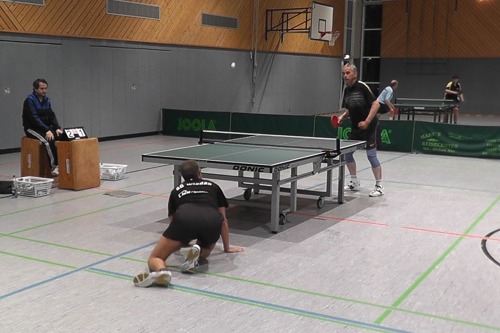 Am Nebentisch lieferten sich parallel dazu „Matze“ und Abwehrcrack Schuback ein packendes Duell. Beide schenkten sich nichts und dieses Spiel ging schließlich bis in den 5. Satz. Dort allerdings konnte sich Schuback mit all seiner Routine doch noch durchsetzen und die Partie für sich entscheiden. Der Knackpunkt des Spiels aus Matzes Sicht war der 3. Satz. Dort hatte Matze nämlich nach einer 2:0-Satzführung schon zwei Matchbälle gegen Schuback, die dieser jedoch beide abwehren konnte.