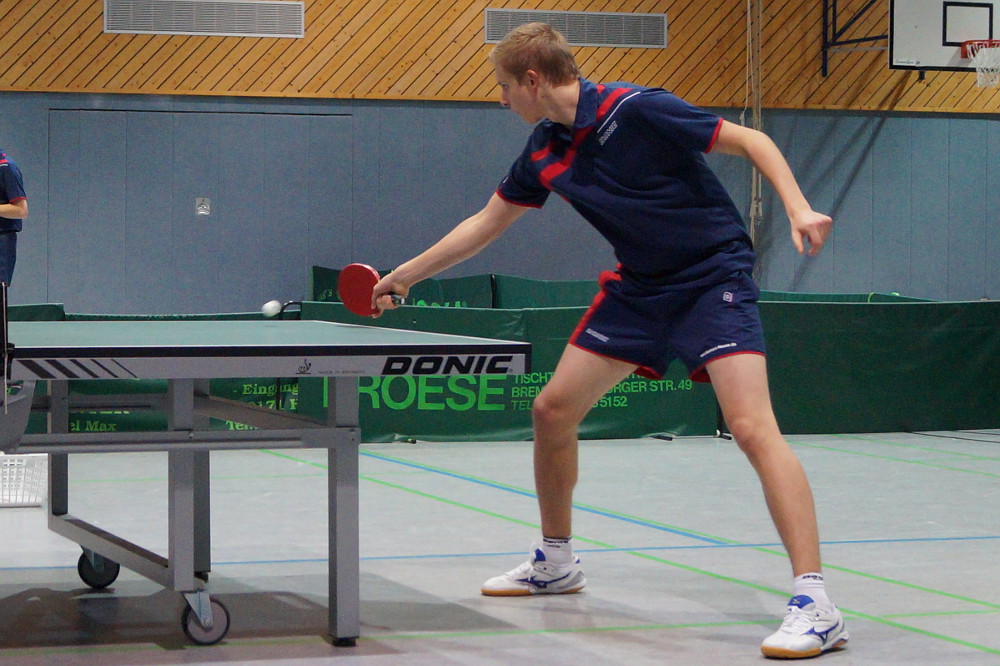 Unser oberes Paarkreuz hatte dann im ersten Einzeldurchgang jeweils das Nachsehen. Christoph verlor gegen Dirk Lüßen und auch Farhard musste sich Sottrums Spitzenspieler Michael Itzen geschlagen geben. Eine optisch hochwertige Partie konnte man dann im Anschluss zwischen Julian und Andre Milosch bestaunen. Einen tollen Ballwechsel nach dem anderen wurde dort von beiden aus dem Hut gezaubert. Am Ende hatte Milisch jedoch mit 8:11, 12:10, 11:9 und 11:5 die Nase vorn. Auch Marco konnte im Anschluss nicht punkten. Er unterlag dem Sottrumer Nachwuchsspieler Käbisch deutlich in drei Sätzen.