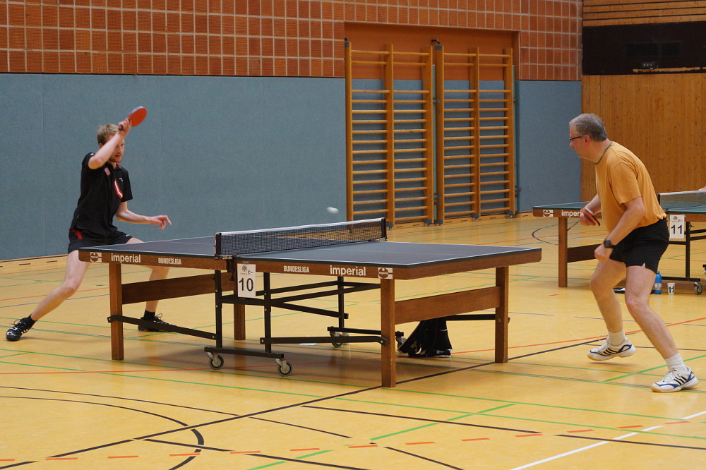 In den Doppeln trafen Julian und Philipp, nach einem Freilos im Achtelfinale, auf das Ippensener Einserdoppel Lühmann/Tietjen aus der 2. Bezirksklasse. Die Ippensener Paarung spielte in der letzten Saison immerhin eine 16:8 Doppelbilanz und steht in dieser Saison mit 3:0 noch ungeschlagen da. Umso erfreulicher, dass Julian und Philipp sich am Ende in vier Sätzen mit 11:7, 11:8, 8:11 und 11:9 durchsetzen konnten. Im Halbfinale war dann allerdings Schluss. Erneut musste man gegen zwei Ippensener ran. Dieses Mal allerdings spielten unsere Jungs zu unkonzentriert und verloren deshalb trotz ansteigender Leistungskurve relativ deutlich gegen Nack/Kröger (4:11, 3:11, 12:10, 10:12). Kevin und Stephan Ludwig konnten ihr Auftaktdoppel ebenfalls gewinnen. Gegen Ronald Blome aus Reeßum und Wolfgang Schröder aus Tiste gewann man knapp im fünften Satz. Auch hier war dann allerdings im zweiten Doppel schluss. Gegen Andre Hauck (Kirchwalsede) und Torsten Praß (Elm) setzte es eine klare Niederlage in drei Sätzen.