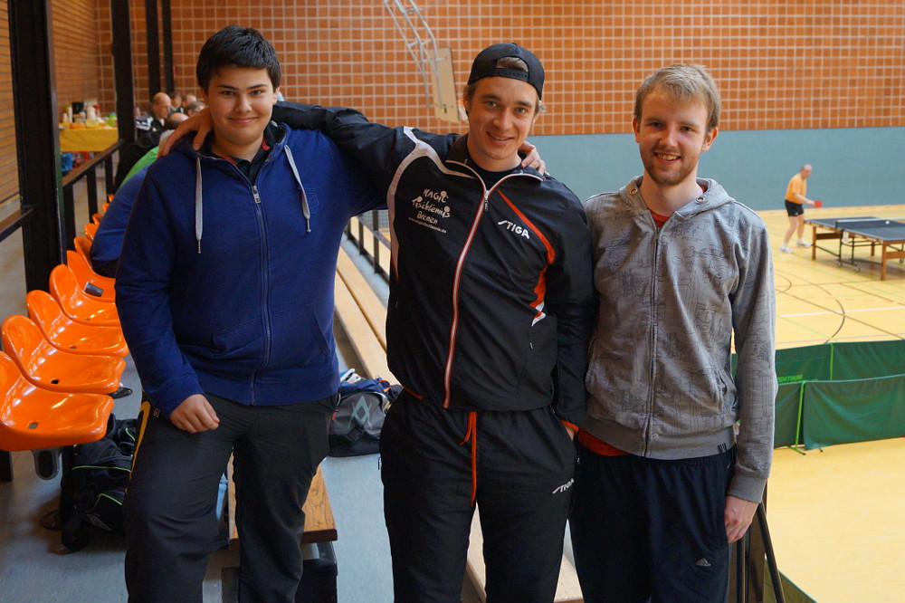 Julian (QTTR 1509) und Philipp (QTTR 1519) entschieden sich, bei den Herren B (bis QTTR 1600) mitzuwirken. Kevin hatte eigentlich vor, in den Herren C (bis QTTR 1400) zu starten, hat aber mittlerweile schon einen QTTR-Wert von 1417, sodass er ebenfalls in bei den Herren B meldete, was für seine weitere Entwicklung sicherlich das Richtige war. Da Julian und Philipp auch in der Liga zusammen ein Doppel bilden, war klar, dass sie auch in Sittensen als Paarung an den Start gehen würden. Für Kevin fand sich aber auch schnell ein passender Doppelpartner. In Sandbostels Kreisligaspieler Stephan Ludwig hatte Kevin einen erfahrenden Spieler an seiner Seite.