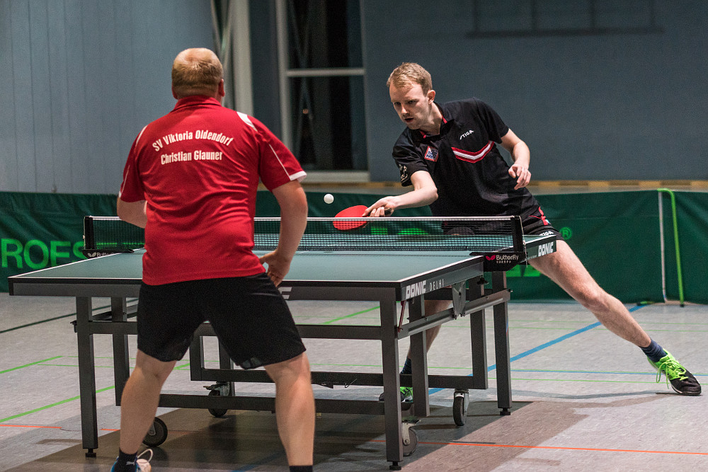 Da wir in der jüngeren Vergangenheit bisher noch nie mit dem Team aus Oldendorf zu tun hatten, konnten wir uns im Vorfeld des Spiels lediglich anhand der QTTR-Werte der Gegner orientieren. Und diese verrieten schon, dass es Oldendorf gegen uns schwer haben würde. So entwickelte sich von Anfang an eine einseitige Partie, was sich in den Doppeln schon deutlich zeigte. Hier durfte lediglich die Paarung Houwers/Dittmer kurz gegen unser Zweierdoppel hoffen. Nachdem Farhad Bahrami und Julian Backhaus den ersten Satz noch verdient an Oldendorf abtreten mussten, steigerten sie sich aber enorm und gewannen das Spiel letztlich doch noch souverän mit 3:11, 12:10, 11:9 und 11:7. Unsere beiden anderen Doppel wurden ebenfalls mehr als deutlich gewonnen.