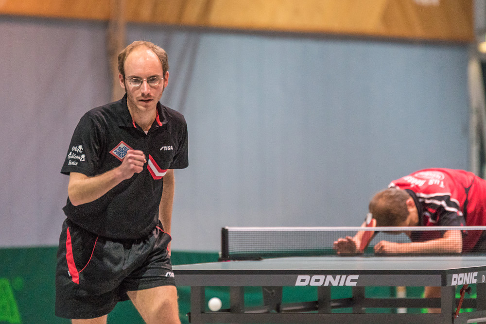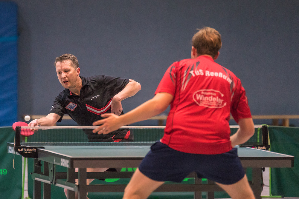 Wir erwischten in den Doppeln einen glänzenden Start mit drei Siegen aus drei Spielen. Erstaunlich schwer tat sich aber unser 1er-Doppel um Christoph Nieger und Marco Jahn. Sie siegten in vier hart umkämpften Sätzen mit 12:14, 12:10, 14:12 und 11:3. Auch unser 2er-Doppel mit Julian Backhaus an der Seite von Farhad Bahrami zog ihren Doppelpunkt nur ganz mühsam an Land. In einem, was die Punkteverteilung in den einzelnen Sätzen anging, kuriosen Doppel siegten unsere Jungs mit 11:8, 1:11, 3:11, 11:2 und 11:3! Weniger spannend machten es Michael Nieger und Philipp Tettmann. Im Duell der beiden an Position 3 gesetzten Doppel konnten sie relativ souverän gegen die Paarung Blome/Peters gewinnen.
