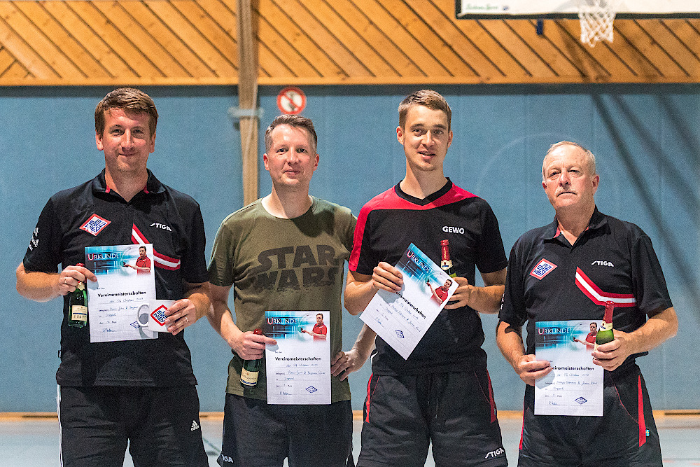 Die Doppelvereinsmeisterschaft sicherten sich in einem ebenfalls ansehnlichen Finale Marco Jahn und Benjamin Rösler. Sie schlugen Philipp Tettmann und Johann Enns verdient in vier Sätzen. Nachdem Philipp und Johann schon hoffnungslos mit 0:2 in Sätzen hinten lagen, konnten sie sich noch mal aufraffen und mit einer Leistungssteigerung den dritten Satz für sich entscheiden. Im vierten Satz reichte es dann aber nicht mehr ganz. Dieser wurde in der Verlängerung verloren. So blieb den beiden Unterlegenen nur, ihren Kontrahenten zur verdienten Doppelvereinsmeisterschaft zu gratulieren.